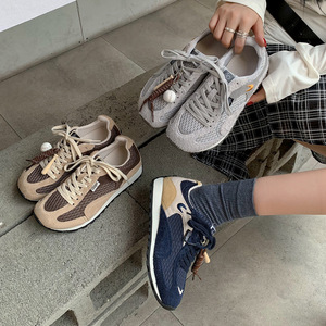 两穿可穿球形装饰韩版拼色德训鞋2025秋内增高中跟运动休闲单鞋女