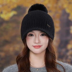 25CK 2180英文标立体鸭舌单球兔毛帽