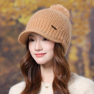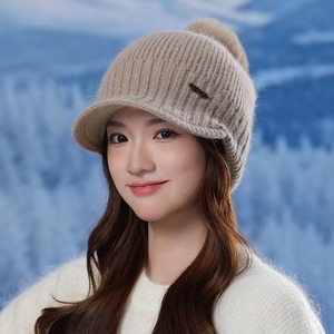 女士帽子秋冬毛线帽双层针织保暖帽时尚冷帽冬季加厚鸭舌棒球帽潮