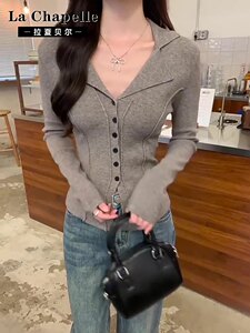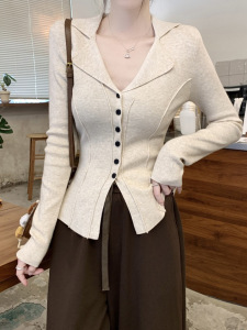 2025早秋新款女装气质时尚设计感纽扣V领修身显瘦针织衫长袖上衣