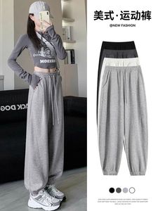 灰色美式运动裤子女2025春秋季新款宽松直筒阔腿裤休闲长款束脚裤