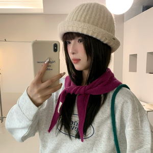 纯羊毛针织三角巾女2025年秋冬新款保暖披肩显脸小头巾防寒小围巾