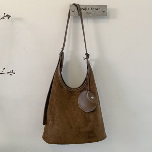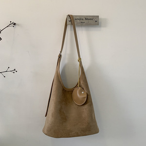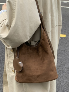 韩版休闲磨砂复古包包女大容量2025新款秋季单肩包流行子母水桶包