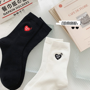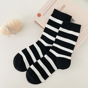 韩国黑白条纹袜子女纯棉中筒袜春秋日系ins潮百搭学院风运动长袜