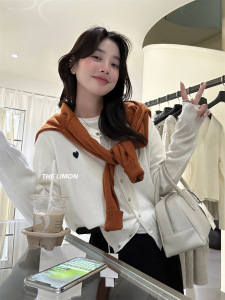 THE LIMON柠檬绿茶2025冬季经典休闲减龄爱心刺绣针织开衫上衣女