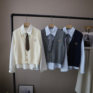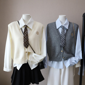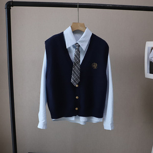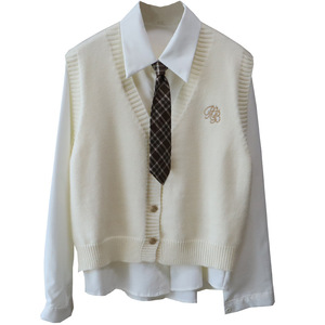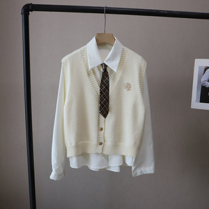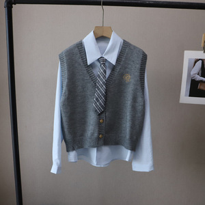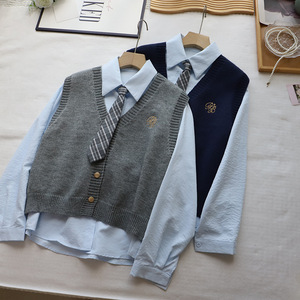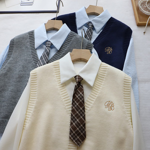 [比正]2025秋季新款韩版配领带衬衫两件套外搭针织刺绣马甲女5012
