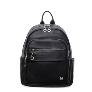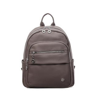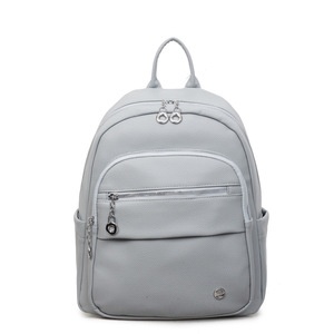 韩版纯色百搭pu软皮双肩包女2025新款大容量旅行背包高中学生书包