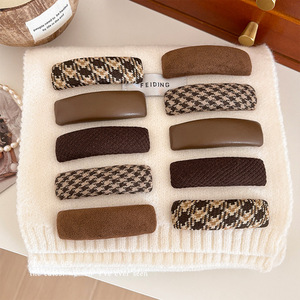 2#咖色千鸟格发夹8cm
