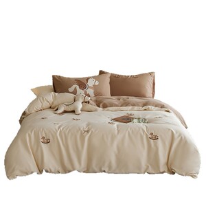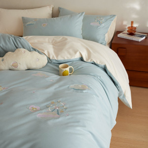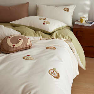 秋冬新款小清新萌系绣花全棉磨毛四件套A类保暖纯棉被套床单寝具