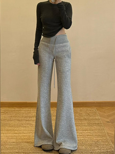 灰色微喇叭运动裤子女款2025年秋季新款高腰显瘦休闲阔腿马蹄卫裤