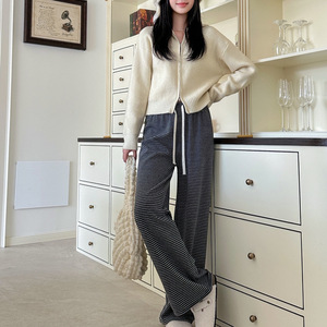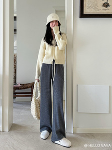 HELLOVAVA条纹遛弯裤休闲宽松显瘦直筒裤2025秋季新款拖地慵懒裤