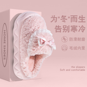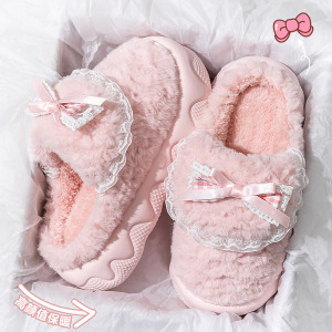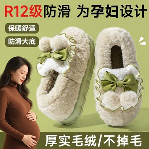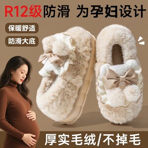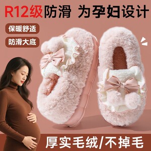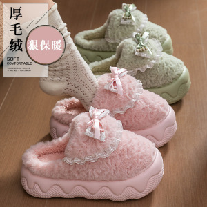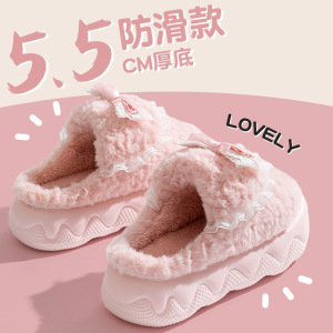 外穿居家厚底棉拖鞋女秋冬季防滑松糕室内增高跟毛毛拖鞋保暖月子