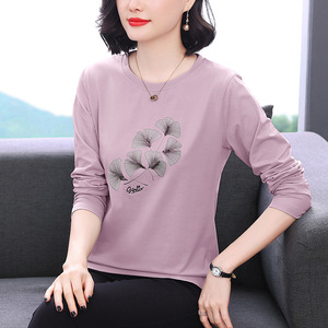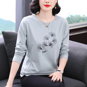 妈妈秋装印花长袖t恤女士气质上衣2025年新款早秋流行穿搭打底衫
