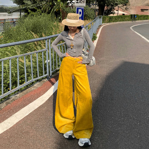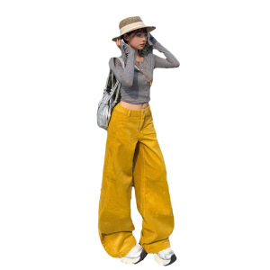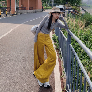 【今茵】复古高腰宽松灯芯绒阔腿裤前开袋百搭直筒显瘦休闲裤子女