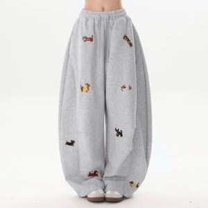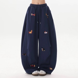 2025美式复古长裤小狗刺绣休闲女款裤子时尚洋气流行直筒香蕉卫裤