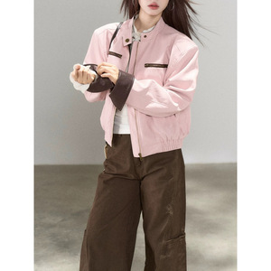 一颗小野莓粉色皮衣外套女2025年秋季新款酷飒独特超好看休闲夹克
