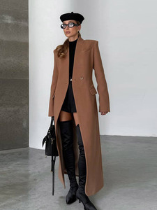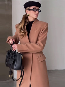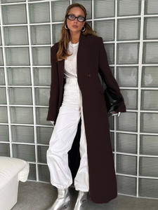 时髦通勤风纯色长款无扣大衣外套女2025秋冬新款跨境欧美风新款