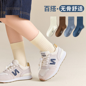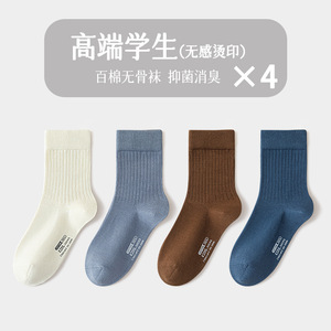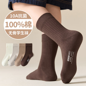 儿童袜子纯棉秋冬季无骨中筒袜纯色学生中大童男童女童抗菌防臭袜