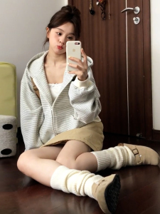 韩系早秋穿搭条纹开衫连帽卫衣外套女春秋季2025新款宽松长袖上衣