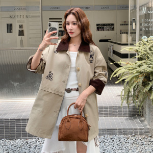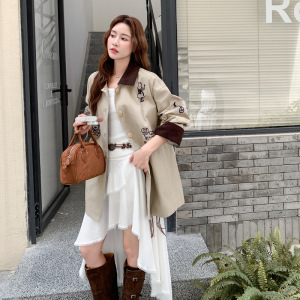 现货2025秋季女装新款时尚超好看袖口拼接刺绣长款风衣1008665