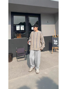 慵懒简约正反两面穿牛仔色圆领针织毛衣 新款潮流文艺流行百搭ins