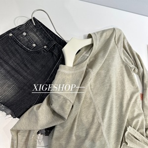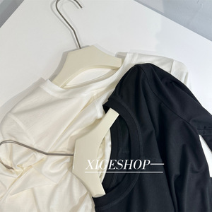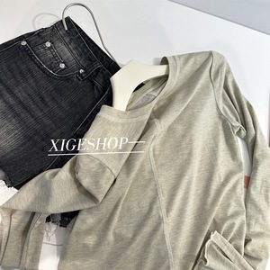 早秋薄微透天丝羊毛拼缝打底衫女简约修身显瘦长袖圆领内搭上衣T