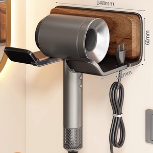 【升级款】加厚黑胡桃木吹风机支架【后置绕线款】-免钉款