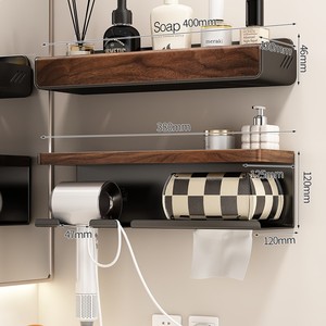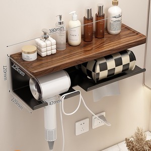 黑胡桃木吹风机+纸巾架+黑胡桃木置物架40厘米