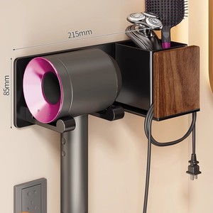 【旗舰款】加厚黑胡桃木吹风机支架【收纳桶+后置绕线款】-免钉款