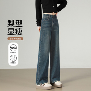 窄版直筒牛仔裤女2025新款秋季流行爆款小个子高腰梨型显瘦阔腿裤
