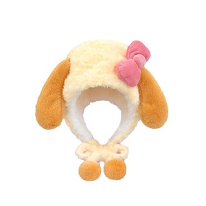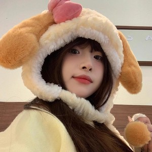 秋冬加绒帽奶油黄大耳小狗毛茸茸帽子可爱大蝴蝶结护耳雷锋帽子女