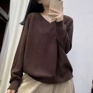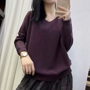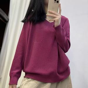 2025秋季新款 简约纯色刺绣勾花针织毛衣 宽松圆领套头内搭毛衣女