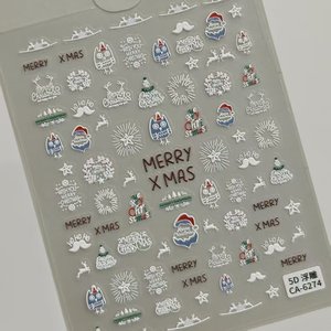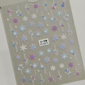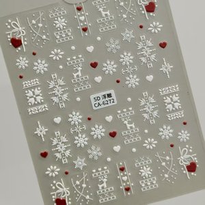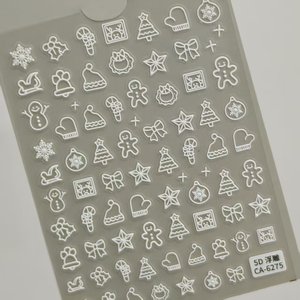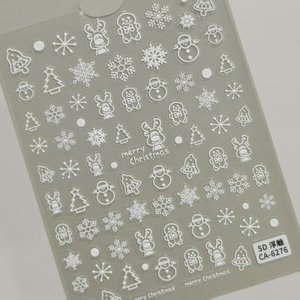 冬季圣诞雪花美甲贴纸5D浮雕立体白色镂空雪花指甲贴纸饰品 CA款