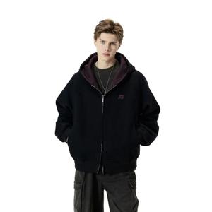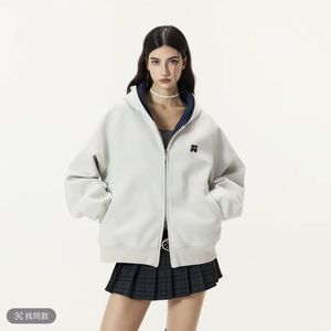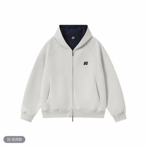 春秋新款微短款撞色刺绣双拉链开衫卫衣男女460g情侣连帽休YL轻奢