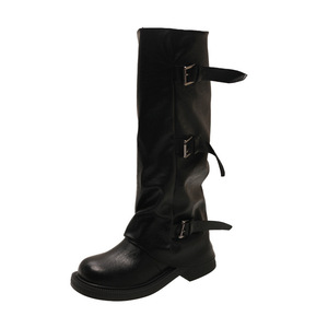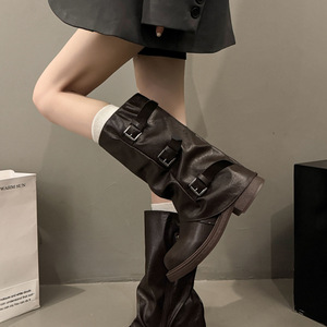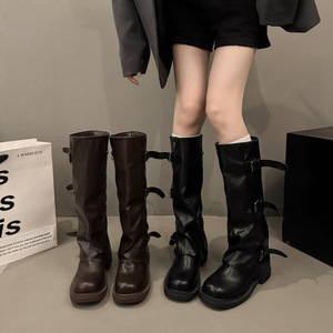 复古裤管靴长筒靴女2025秋季新款高筒褶皱堆堆靴辣妹英伦风骑士靴