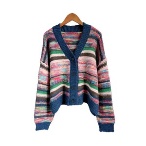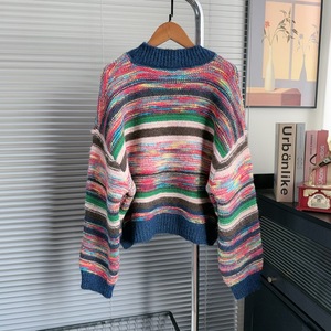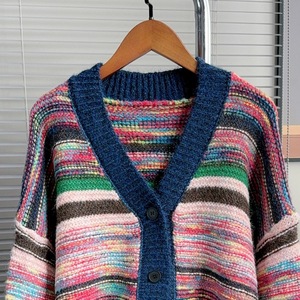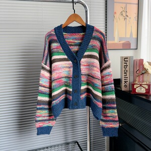 复古撞色条纹毛衣外套女秋冬季新款外搭慵懒高级感小个子针织开衫