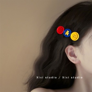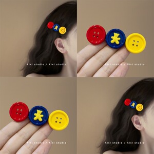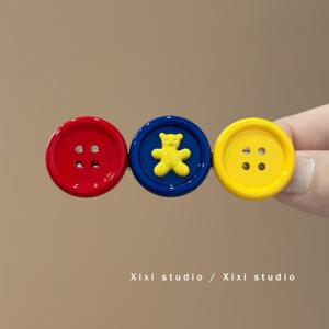 可爱撞色纽扣小熊发夹少女百搭鸭嘴夹碎发刘海夹创意边夹发卡发饰