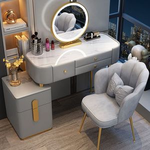 全实木岩板梳妆台玻璃轻奢高级卧室现代简约小型收纳柜一体化妆桌