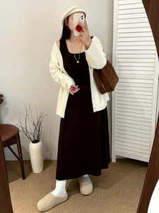 大码女装双面穿背心裙女内搭连衣裙2025秋胖mm中长款连衣裙23291