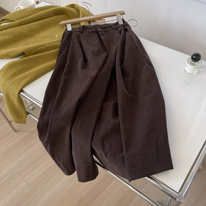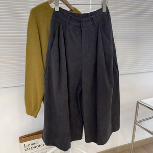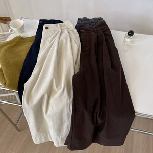 复古港味灯芯绒八分裤秋冬半松紧高腰宽松小个子休闲阔脚阔腿裤女