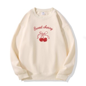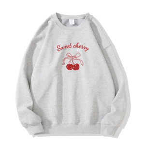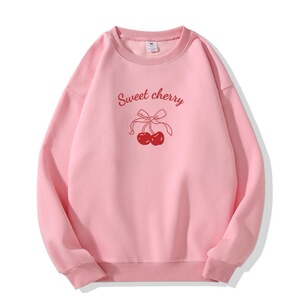 春秋季新款小众卡通樱桃字母长袖卫衣女款休闲外穿百搭减龄上衣女