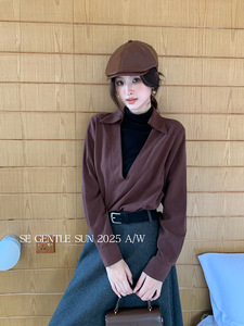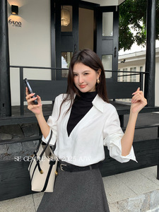 秀熙熙2025秋季白标新款气质简约假两件套翻领衬衫长袖上衣89611
