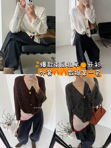 2025欧美跨境外贸南瓜扣新款针织保暖开衫上衣时尚撞色纽扣毛衣女