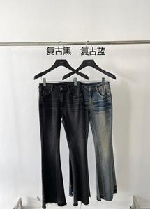 2025秋季新款水洗重工牛仔裤压褶渐变色高腰修身微弹喇叭裤Y-2089