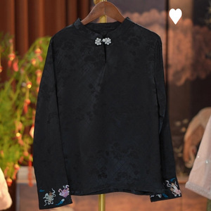 新中式国风重工刺绣衬衫女2025春秋季新款小众设计感长袖打底上衣