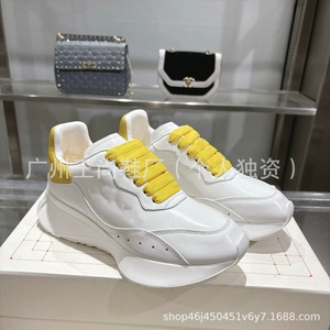 麦AM娜扎同款真皮厚底增高老爹鞋女拼色休闲运动鞋男女情侣小白鞋