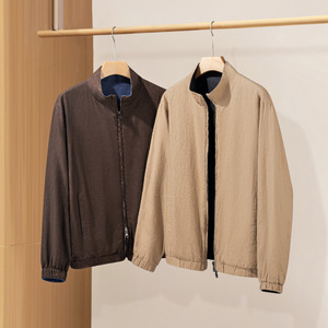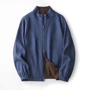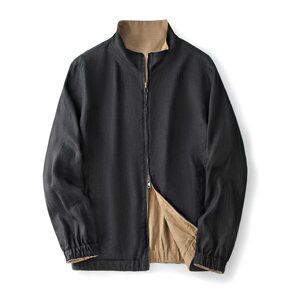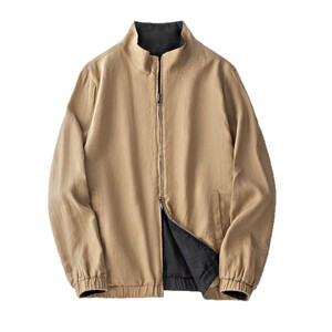 LP老钱风立领工装风男式夹克春秋潮牌纯亚麻拉链双面双穿男士外套