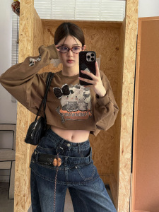 ME KAKAMEE十三行美式短款趣味KT卫衣配可拆蝴蝶结秋季上衣女8910