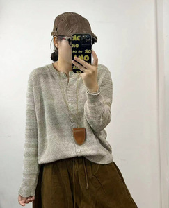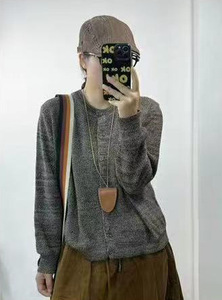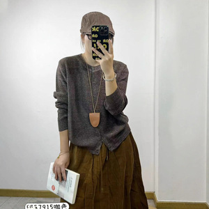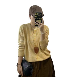新品时尚简约宽松外套女单排扣长袖针织开衫