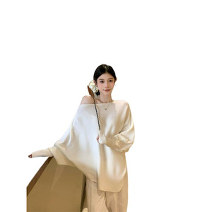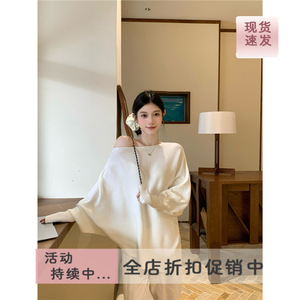 现货实拍新款宽松蝙蝠袖毛针织女秋冬韩系软糯慵懒感百搭上衣X